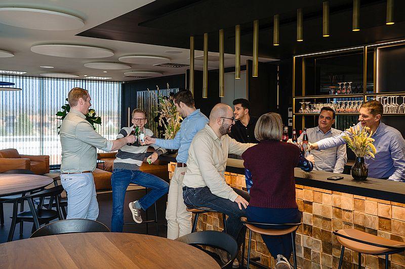 Ici, vous trouverez toujours quelqu’un pour une conversation conviviale ou un collègue astucieux prêt à vous aider immédiatement lorsque vous êtes bloqué. Et soyons honnêtes : nous savons aussi parfaitement comment bien commencer le week-end.