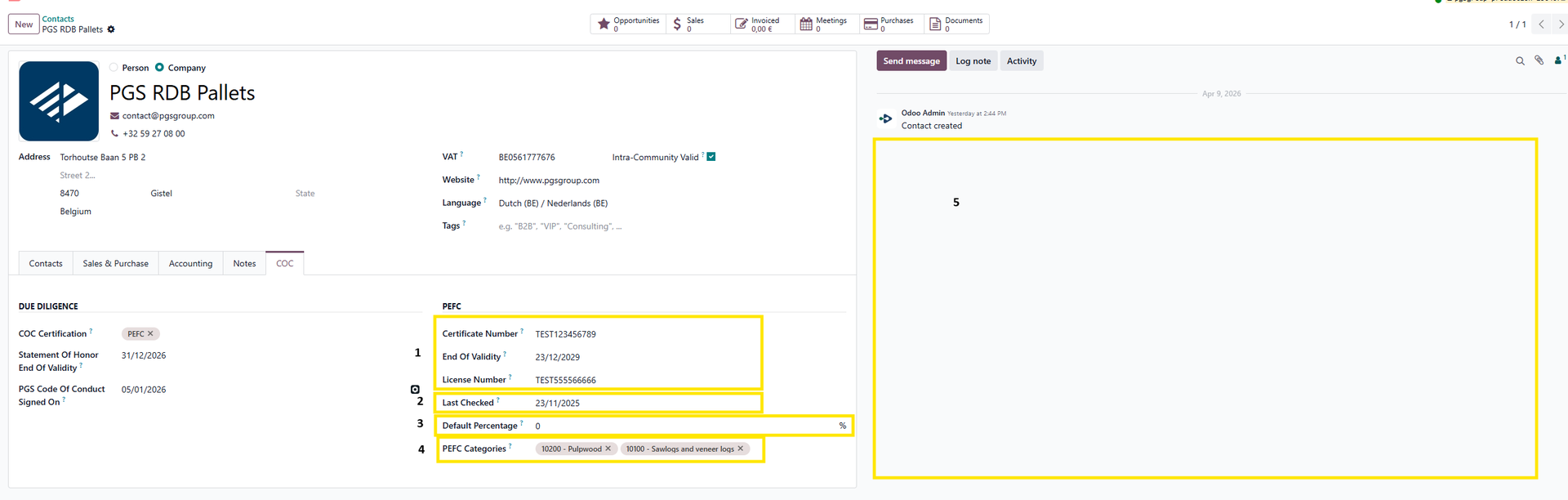 When PEFC is selected as COC Certification, an extra colum 'PEFC' becomes visible on the tab 'COC'.