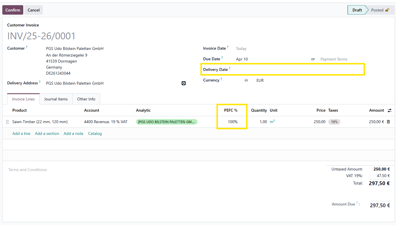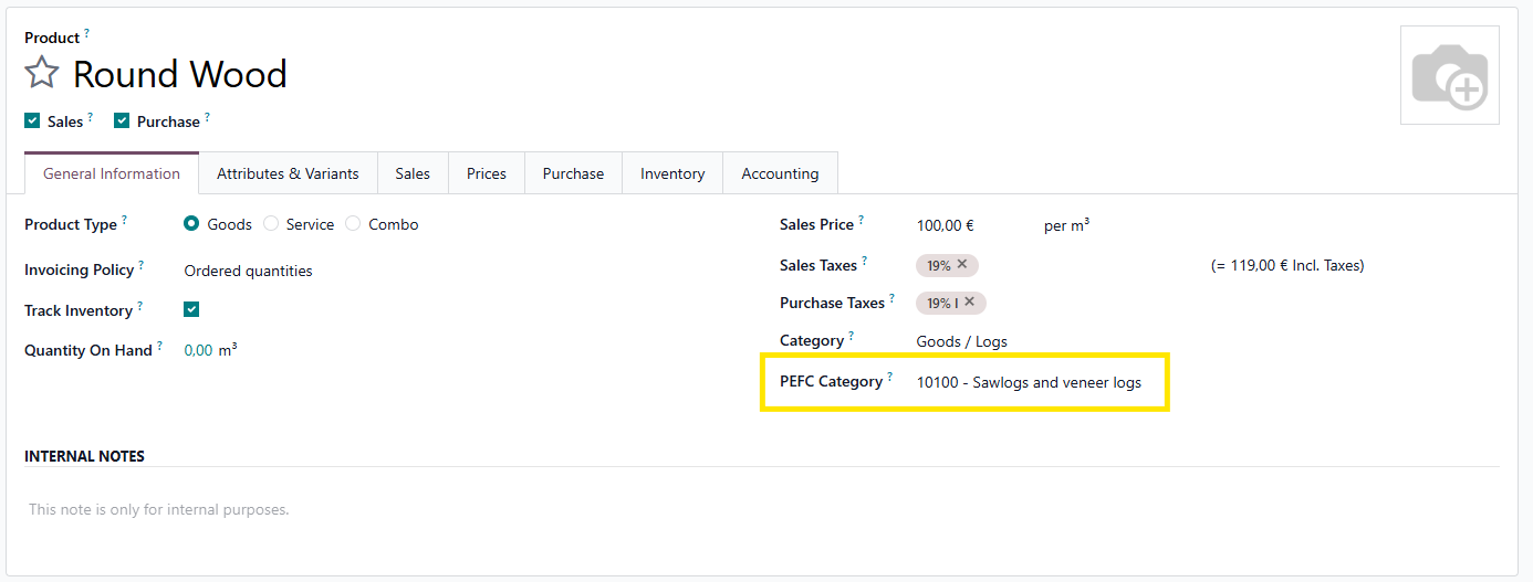 - You can optionally add a default percentage on a vendor. This percentage will then standardly appear on a vendor bill when a product is added with a compatible PEFC Category.