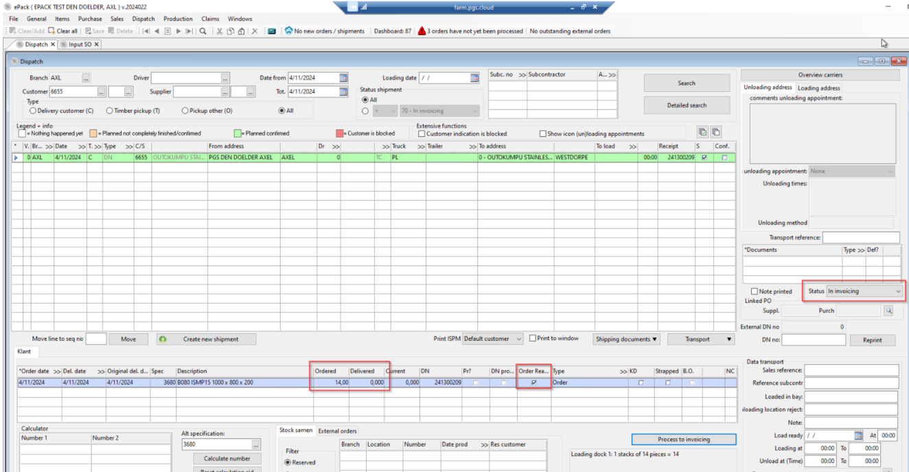 Other changes than quantity can be done in ‘input invoicing order’ or if necessary, you can follow the steps from ‘to change to quantity’ and change the order itself in ePack (after clicking off the ‘order ready box’.